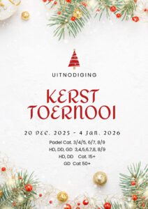 Beste Tennis en Padelvrienden, Er kan weer ingeschreven worden voor ons gezellige Kersttoernooi in de Tennishal te Asten!Inschrijven is mogelijk vanaf 15